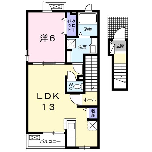 | 間取り詳細 | 洋室 6畳 、 LDK 13畳 |