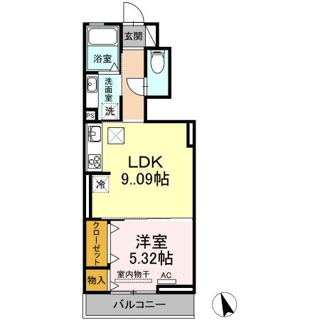 | 間取り詳細 | LDK 9.09畳 、 洋室 5.32畳 |