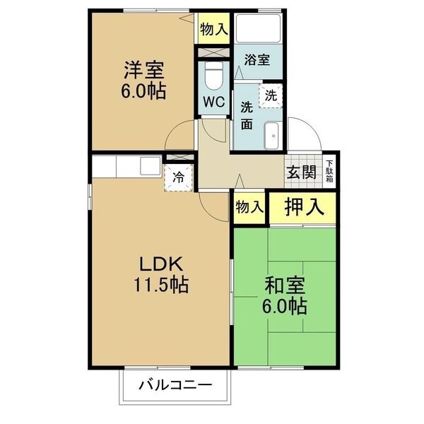 | 間取り詳細 | LDK 11.5畳 、 和室 6畳 、 洋室 6畳 |