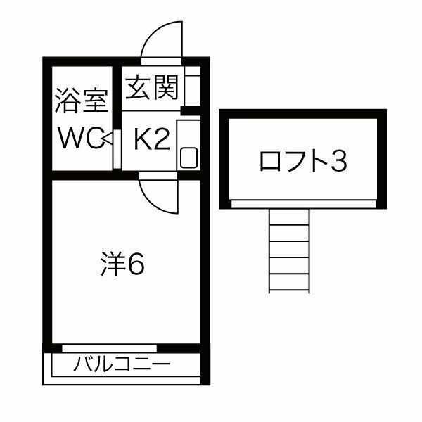 | 間取り詳細 | 洋室 6畳 、 K 2畳 |