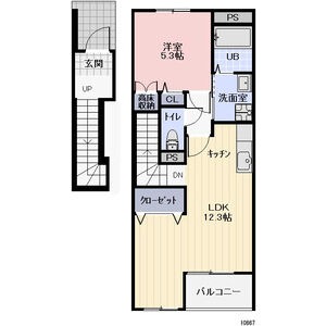 | 間取り詳細 | LDK 12.3畳 、 洋室 5.3畳 |