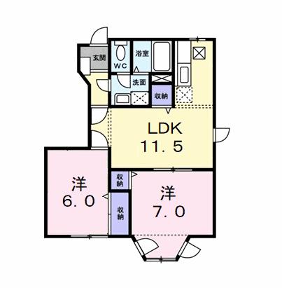 | 間取り詳細 | 洋室 6畳 、 洋室 7畳 、 LDK 11.5畳 |