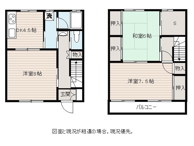 | 間取り詳細 | DK 4.5畳 、 洋室 8畳 、 洋室 7.5畳 、 和室 6畳 、 S 2畳 |