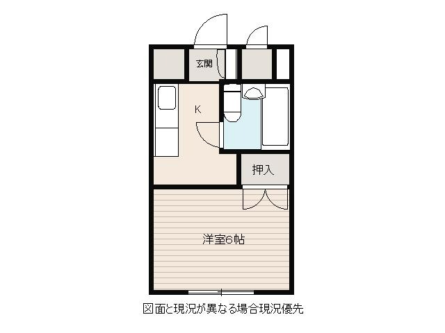 | 間取り詳細 | K 3畳 、 洋室 6畳 |