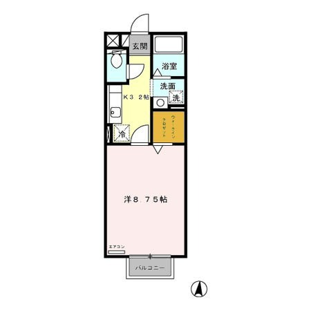| 間取り詳細 | K 3.2畳 、 洋室 8.75畳 |