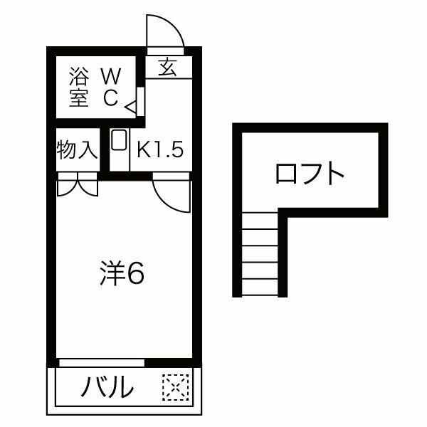 | 間取り詳細 | 洋室 6畳 、 K 1.5畳 |