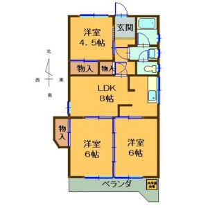 | 間取り詳細 | LDK 8畳 、 洋室 6畳 、 洋室 6畳 、 洋室 4.5畳 |