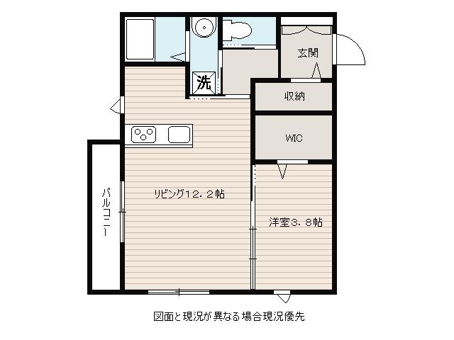 | 間取り詳細 | LDK 12.2畳 、 洋室 3.8畳 |