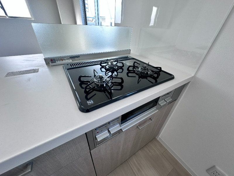 | 設備 | ガス(プロパン)、インターホン(TVモニター付き)、オートロック、宅配ボックス、駐輪場、角部屋、フローリング、ベランダ・バルコニー、収納スペース、ウォークインクローゼット、下駄箱、バス・トイレ別(別室)、シャワー、追い焚き、浴室乾燥機、給湯、3点給湯、ウォシュレット、洗面台、洗面所独立、シャンプードレッサー、三面鏡付き洗面化粧台、洗面所にドア、洗濯機置き場(室内)、コンロ設置済、コンロ口数(3)、コンロ種類(プロパン)、グリル、システムキッチン、対面キッチン、エアコン、CATV | ||