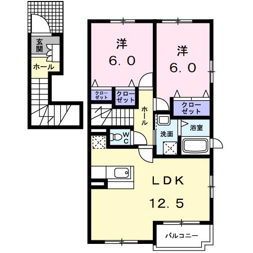 | 間取り詳細 | 洋室 6畳 、 洋室 6畳 、 LDK 12.5畳 |