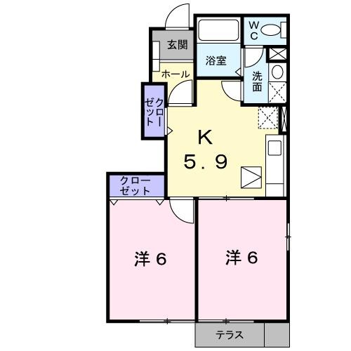 | 間取り詳細 | 洋室 6畳 、 洋室 6畳 、 K 5.9畳 |