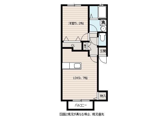| 間取り詳細 | LDK 9.7畳 、 洋室 5.2畳 |