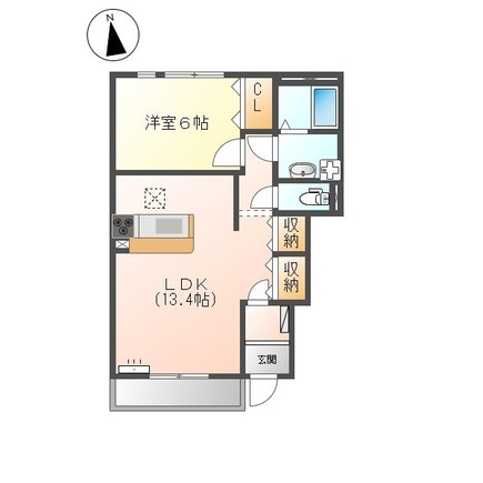| 間取り詳細 | LDK 13.4畳 、 洋室 6畳 |