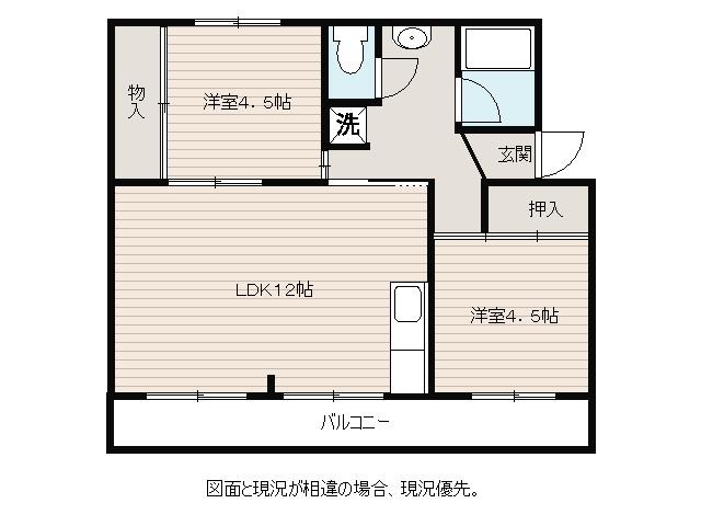 | 間取り詳細 | LDK 12畳 、 洋室 4.5畳 、 洋室 4.5畳 |