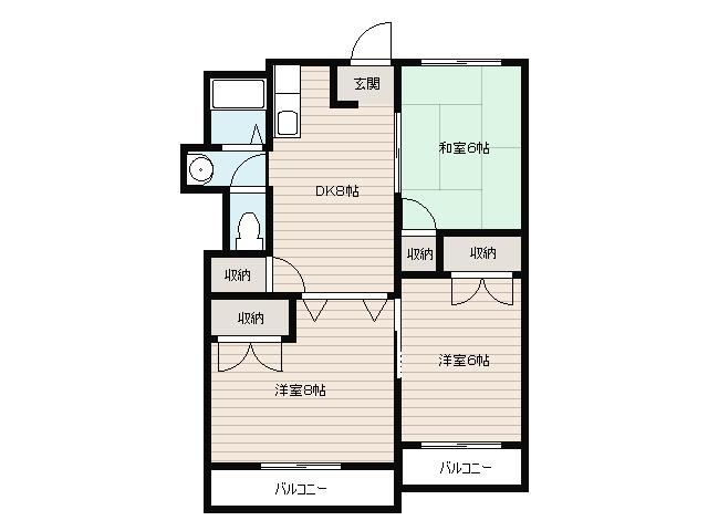 洋室 8畳 洋室 6畳 和室 6畳 |