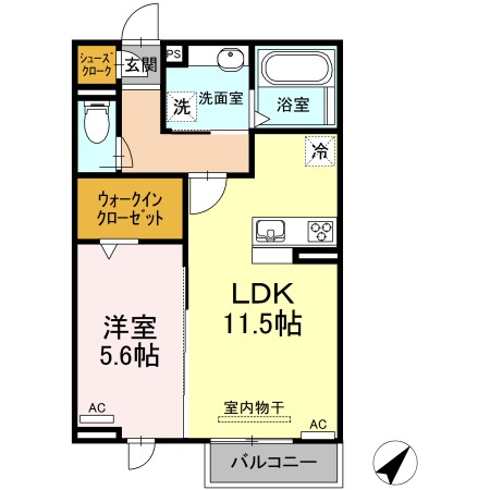 | 間取り詳細 | LDK 11.5畳 、 洋室 5.6畳 |