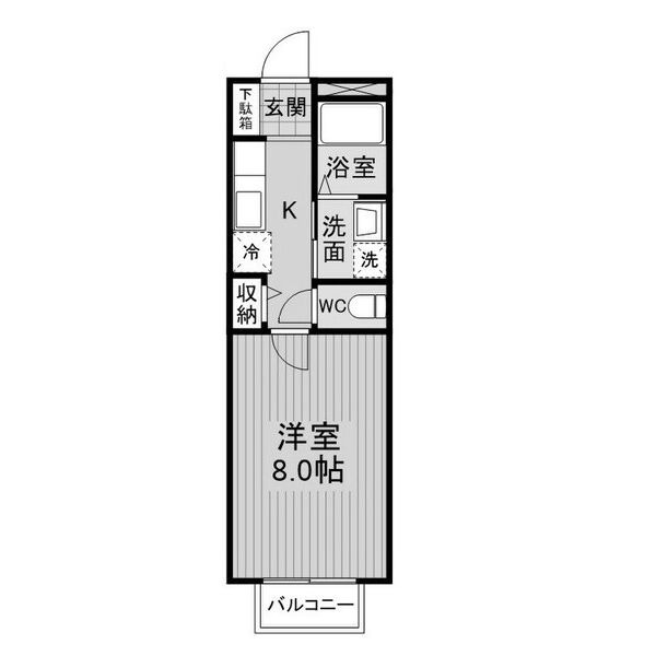 | 間取り詳細 | K 畳 、 洋室 8畳 |