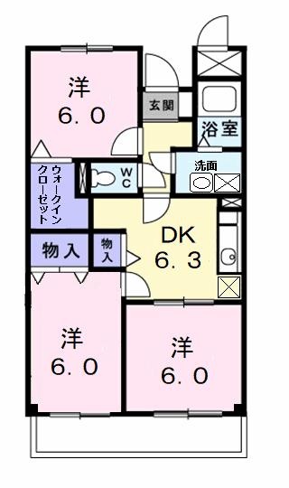 | 間取り詳細 | 洋室 6畳 、 洋室 6畳 、 洋室 6畳 、 DK 6.3畳 |