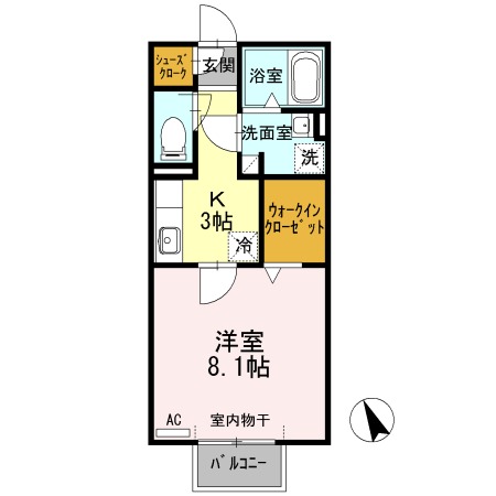 | 間取り詳細 | K 3畳 、 洋室 8.1畳 |