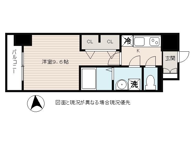 | 間取り詳細 | K 畳 、 洋室 9.6畳 |