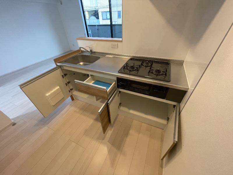 | 設備 | インターホン(TVモニター付き)、宅配ボックス、フローリング、照明器具、ベランダ・バルコニー、ウォークインクローゼット、下駄箱、バス・トイレ別(別室)、シャワー、追い焚き、浴室乾燥機、脱衣所、給湯、洗面台、洗面所独立、シャンプードレッサー、洗濯機置き場(室内)、コンロ設置済、コンロ口数(3)、グリル、システムキッチン、カウンターキッチン、対面キッチン、エアコン、エアコン台数(2)、インターネット使用料無料 | ||