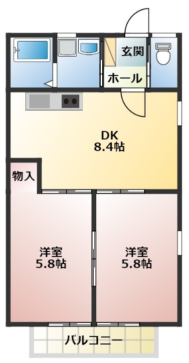 | 間取り詳細 | DK 8.4畳 、 洋室 5.8畳 、 洋室 5.8畳 |