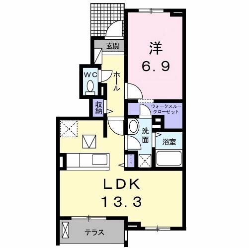 | 間取り詳細 | 洋室 6.9畳 、 LDK 13.3畳 |