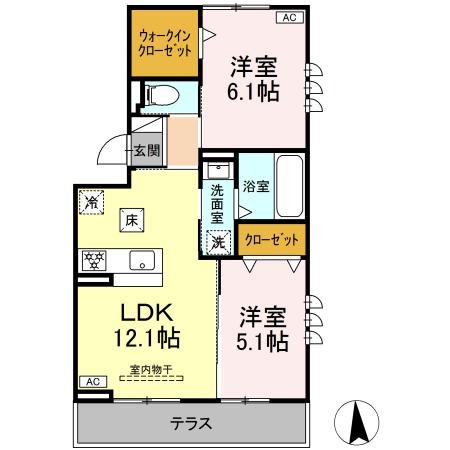 | 間取り詳細 | LDK 12.1畳 、 洋室 6.1畳 、 洋室 5.1畳 |