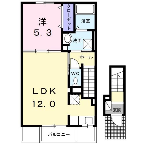 | 間取り詳細 | 洋室 5.3畳 、 LDK 12畳 |
