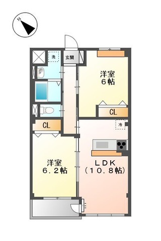 | 間取り詳細 | 洋室 6.2畳 、 洋室 6畳 、 LDK 10.8畳 |