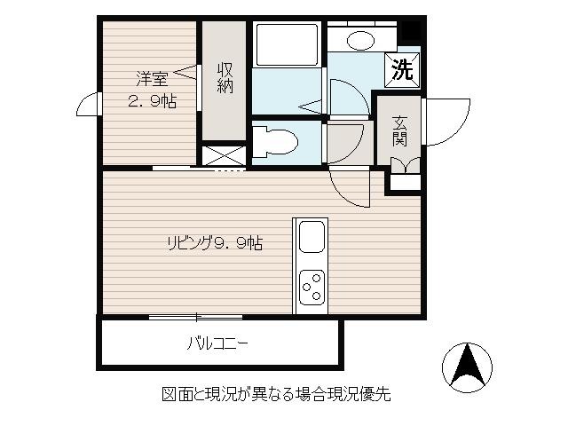 | 間取り詳細 | LDK 9.9畳 、 洋室 2.9畳 |