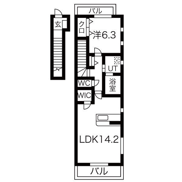 | 間取り詳細 | LDK 14.2畳 、 洋室 6.3畳 |