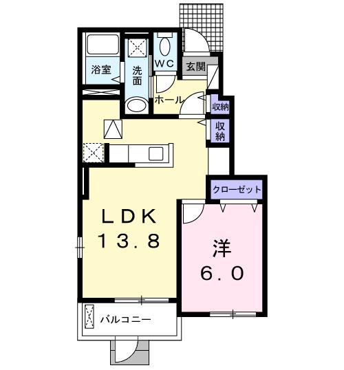 | 間取り詳細 | 洋室 6畳 、 LDK 13.8畳 |