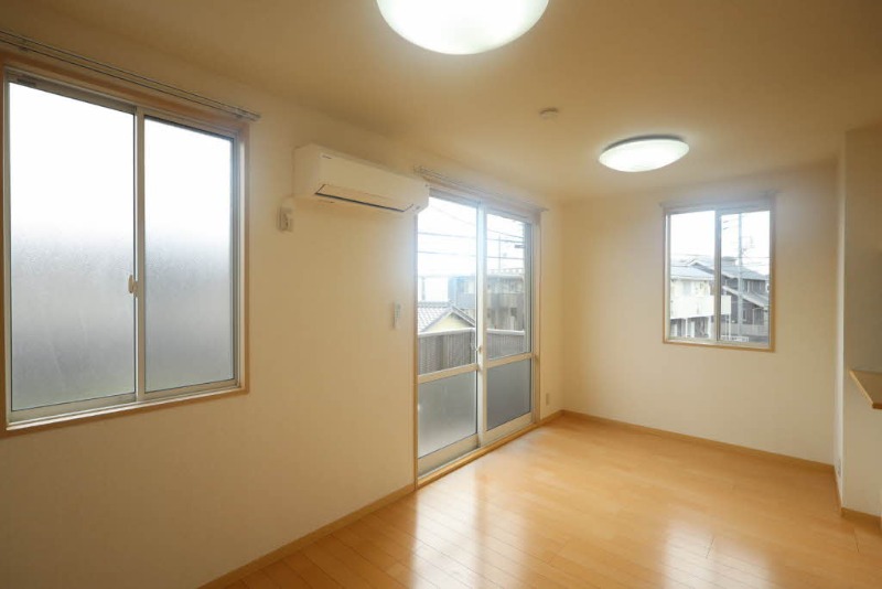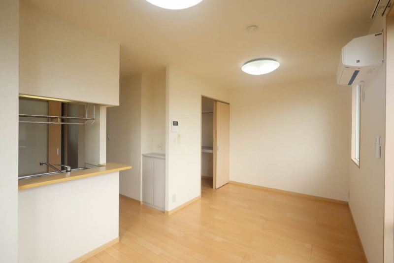 ガス(プロパン)、インターホン(TVモニター付き)、火災報知機、フローリング、照明器具、ベランダ・バルコニー、ウォークインクローゼット、下駄箱、バス・トイレ別(別室)、シャワー、脱衣所、ウォシュレット、ウォームレット、洗面台、洗面所独立、シャンプードレッサー、洗濯機置き場(室内)、コンロ設置可、カウンターキッチン、対面キッチン、エアコン |