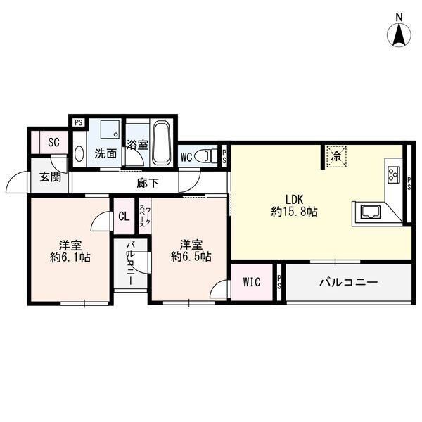 | 間取り詳細 | LDK 15.8畳 、 洋室 6.5畳 、 洋室 6.1畳 |