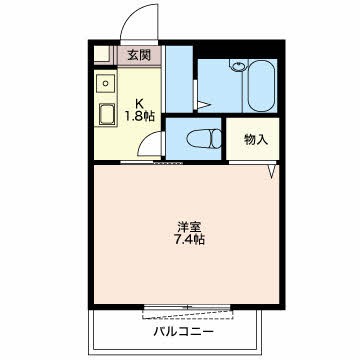 | 間取り詳細 | K 1.8畳 、 洋室 7.4畳 |