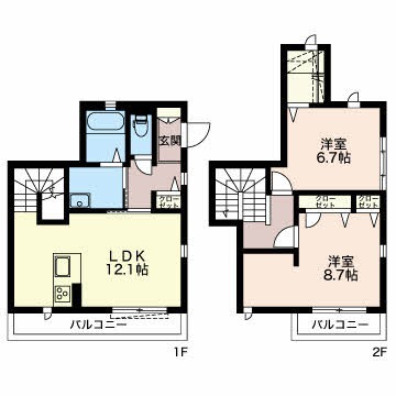 | 間取り詳細 | LDK 12.1畳 、 洋室 6.7畳 、 洋室 8.7畳 |