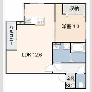 | 間取り詳細 | LDK 12.6畳 、 洋室 4.3畳 |