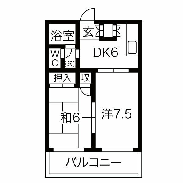 | 間取り詳細 | DK 6畳 、 洋室 7.5畳 、 和室 6畳 |