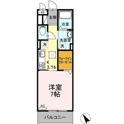 | 間取り詳細 | K 3.76畳 、 洋室 7畳 |