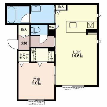| 間取り詳細 | LDK 14.6畳 、 洋室 6畳 |