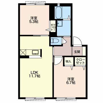 | 間取り詳細 | LDK 11.7畳 、 洋室 6.7畳 、 洋室 5.3畳 |