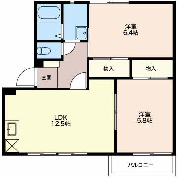 | 間取り詳細 | LDK 12.5畳 、 洋室 6.4畳 、 洋室 5.8畳 |