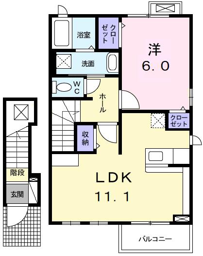| 間取り詳細 | 洋室 6畳 、 LDK 11.1畳 |