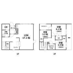 | 間取り詳細 | LDK 17.1畳 、 洋室 6.1畳 、 洋室 3.9畳 、 洋室 3.5畳 、 S 1.5畳 |